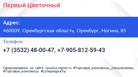 Первый Цветочный по адресу 460009, Оренбургская область, Оренбург, Ногина, 85 в дальнейшем Организация, размещена в следующих категориях:
