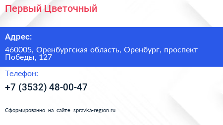 Первый Цветочный по адресу 460005, Оренбургская область, Оренбург, проспект Победы, 127 в дальнейшем Организация, размещена в следующих категориях: