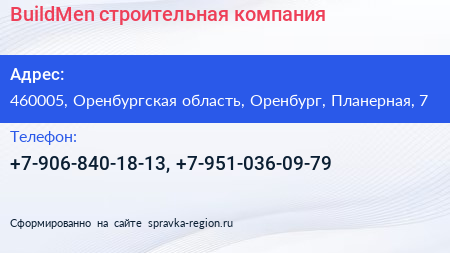 BuildMen, строительная компания по адресу 460005, Оренбургская область, Оренбург, Планерная, 7 в дальнейшем Организация, размещена в следующих категориях: