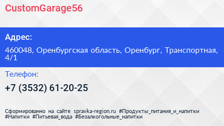 CustomGarage56 по адресу 460048, Оренбургская область, Оренбург, Транспортная, 4/1 в дальнейшем Организация, размещена в следующих категориях: