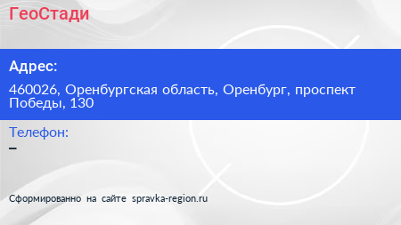 ГеоСтади по адресу 460026, Оренбургская область, Оренбург, проспект Победы, 130 в дальнейшем Организация, размещена в следующих категориях: