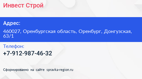 Инвест-Строй по адресу 460027, Оренбургская область, Оренбург, Донгузская, 63/1 в дальнейшем Организация, размещена в следующих категориях: