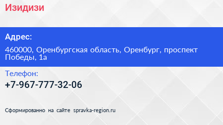 Изидизи по адресу 460000, Оренбургская область, Оренбург, проспект Победы, 1а в дальнейшем Организация, размещена в следующих категориях: