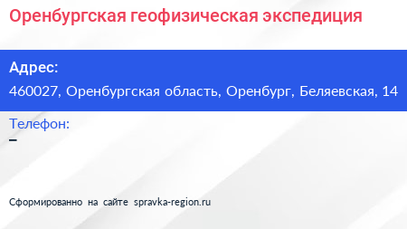 Оренбургская геофизическая экспедиция по адресу 460027, Оренбургская область, Оренбург, Беляевская, 14 в дальнейшем Организация, размещена в следующих категориях: