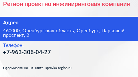 Регион, проектно-инжиниринговая компания по адресу 460000, Оренбургская область, Оренбург, Парковый проспект, 2 в дальнейшем Организация, размещена в следующих категориях: