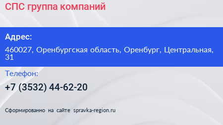 СПС, группа компаний по адресу 460027, Оренбургская область, Оренбург, Центральная, 31 в дальнейшем Организация, размещена в следующих категориях: