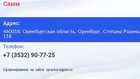 Самм по адресу 460018, Оренбургская область, Оренбург, Степана Разина, 118 в дальнейшем Организация, размещена в следующих категориях: