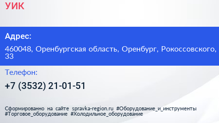 УИК по адресу 460048, Оренбургская область, Оренбург, Рокоссовского, 33 в дальнейшем Организация, размещена в следующих категориях: