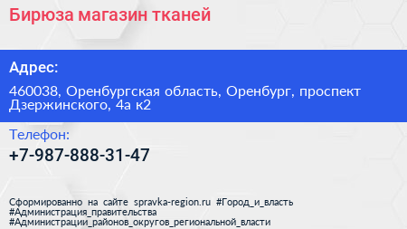 Бирюза, магазин тканей по адресу 460038, Оренбургская область, Оренбург, проспект Дзержинского, 4а к2 в дальнейшем Организация, размещена в следующих категориях: