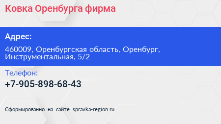 Ковка Оренбурга, фирма по адресу 460009, Оренбургская область, Оренбург, Инструментальная, 5/2 в дальнейшем Организация, размещена в следующих категориях:
