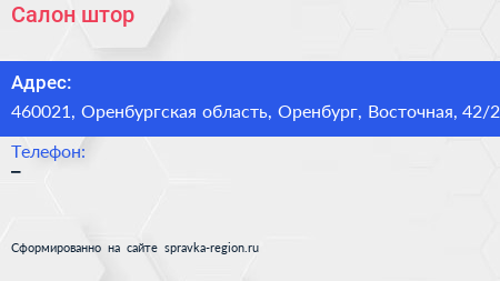 Салон штор по адресу 460021, Оренбургская область, Оренбург, Восточная, 42/2 в дальнейшем Организация, размещена в следующих категориях: