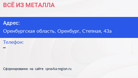 ВСЁ ИЗ МЕТАЛЛА по адресу Оренбургская область, Оренбург, Степная, 43а в дальнейшем Организация, размещена в следующих категориях: