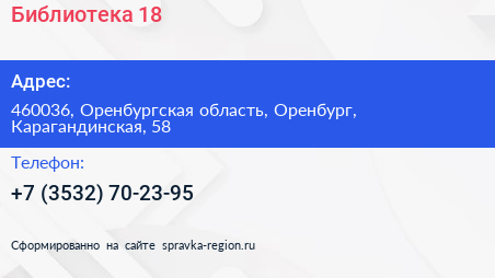 Библиотека №18 по адресу 460036, Оренбургская область, Оренбург, Карагандинская, 58 в дальнейшем Организация, размещена в следующих категориях: