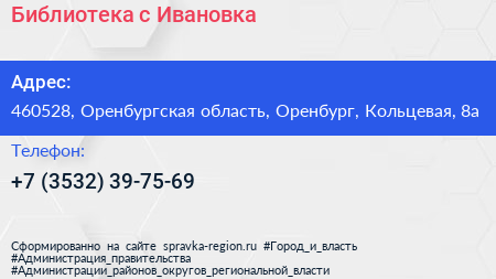 Библиотека, с. Ивановка по адресу 460528, Оренбургская область, Оренбург, Кольцевая, 8а в дальнейшем Организация, размещена в следующих категориях: