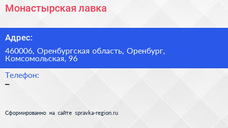 Монастырская лавка по адресу 460006, Оренбургская область, Оренбург, Комсомольская, 96 в дальнейшем Организация, размещена в следующих категориях: