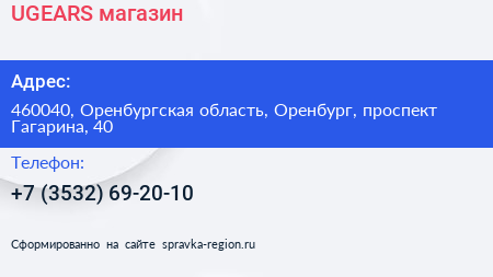 UGEARS, магазин по адресу 460040, Оренбургская область, Оренбург, проспект Гагарина, 40 в дальнейшем Организация, размещена в следующих категориях: