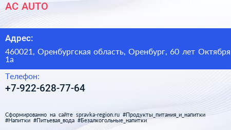 АC-AUTO по адресу 460021, Оренбургская область, Оренбург, 60 лет Октября, 1а в дальнейшем Организация, размещена в следующих категориях:
