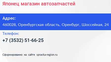 Японец, магазин автозапчастей по адресу 460028, Оренбургская область, Оренбург, Шоссейная, 24 в дальнейшем Организация, размещена в следующих категориях: