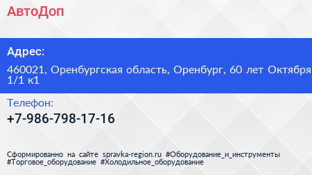 АвтоДоп по адресу 460021, Оренбургская область, Оренбург, 60 лет Октября, 1/1 к1 в дальнейшем Организация, размещена в следующих категориях:
