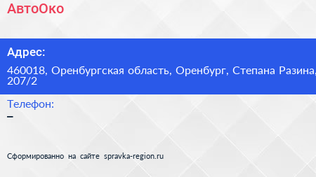 АвтоОко по адресу 460018, Оренбургская область, Оренбург, Степана Разина, 207/2 в дальнейшем Организация, размещена в следующих категориях: