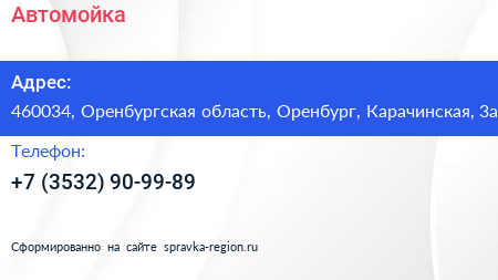 Автомойка по адресу 460034, Оренбургская область, Оренбург, Карачинская, 3а в дальнейшем Организация, размещена в следующих категориях: