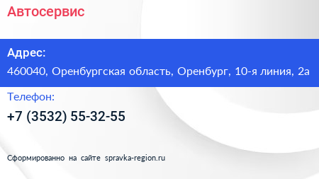 Автосервис по адресу 460040, Оренбургская область, Оренбург, 10-я линия, 2а в дальнейшем Организация, размещена в следующих категориях: