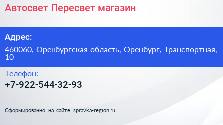 Автосвет Пересвет, магазин по адресу 460060, Оренбургская область, Оренбург, Транспортная, 10 в дальнейшем Организация, размещена в следующих категориях:
