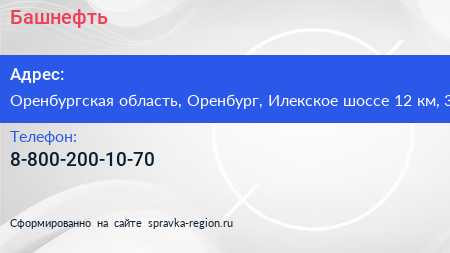 Башнефть по адресу Оренбургская область, Оренбург, Илекское шоссе 12 км, 3 в дальнейшем Организация, размещена в следующих категориях: