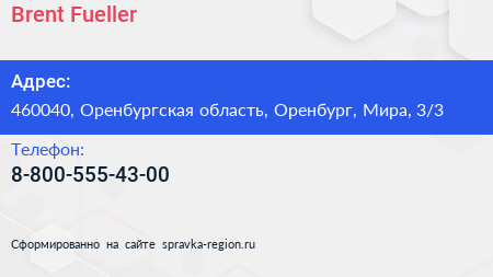 Brent Fueller по адресу 460040, Оренбургская область, Оренбург, Мира, 3/3 в дальнейшем Организация, размещена в следующих категориях: