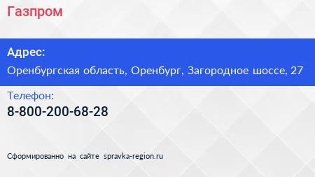 Газпром по адресу Оренбургская область, Оренбург, Загородное шоссе, 27 в дальнейшем Организация, размещена в следующих категориях:
