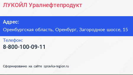 ЛУКОЙЛ-Уралнефтепродукт по адресу Оренбургская область, Оренбург, Загородное шоссе, 15 в дальнейшем Организация, размещена в следующих категориях: