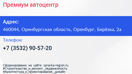 Премиум, автоцентр по адресу 460044, Оренбургская область, Оренбург, Берёзка, 2а в дальнейшем Организация, размещена в следующих категориях: