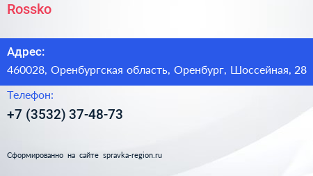 Rossko по адресу 460028, Оренбургская область, Оренбург, Шоссейная, 28 в дальнейшем Организация, размещена в следующих категориях: