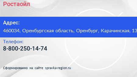 Ростаойл по адресу 460034, Оренбургская область, Оренбург, Карачинская, 13 в дальнейшем Организация, размещена в следующих категориях: