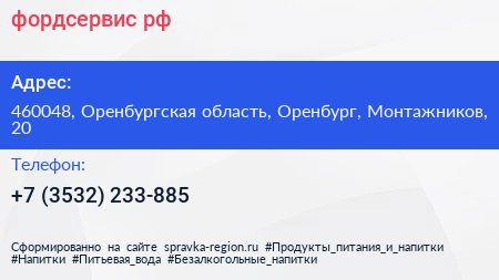 фордсервис.рф по адресу 460048, Оренбургская область, Оренбург, Монтажников, 20 в дальнейшем Организация, размещена в следующих категориях: