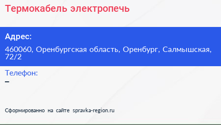 Термокабель электропечь по адресу 460060, Оренбургская область, Оренбург, Салмышская, 72/2 в дальнейшем Организация, размещена в следующих категориях: