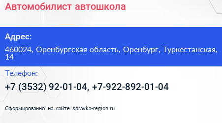 Автомобилист, автошкола по адресу 460024, Оренбургская область, Оренбург, Туркестанская, 14 в дальнейшем Организация, размещена в следующих категориях: