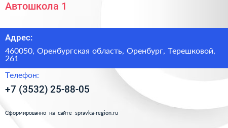 Автошкола №1 по адресу 460050, Оренбургская область, Оренбург, Терешковой, 261 в дальнейшем Организация, размещена в следующих категориях: