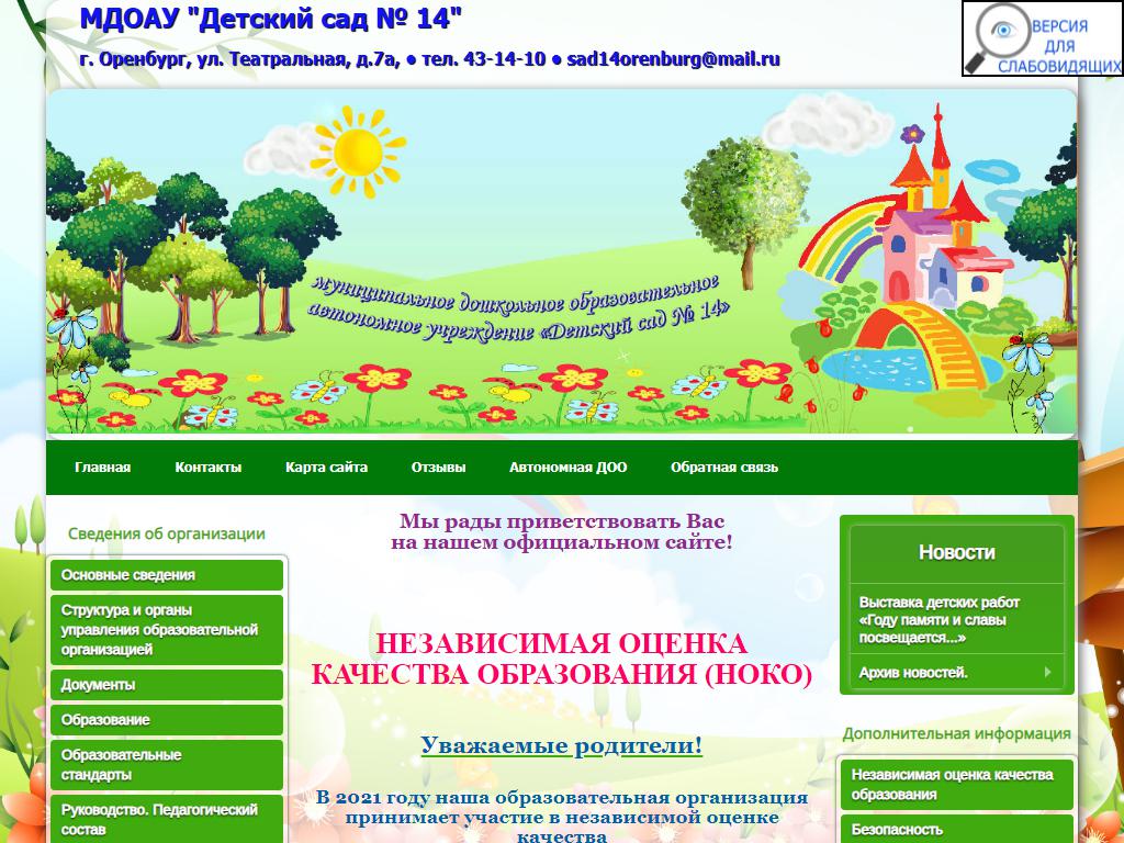 Детский сад №14 по адресу 460044, Оренбургская область, Оренбург, Театральная, 7а в дальнейшем Организация, размещена в следующих категориях: