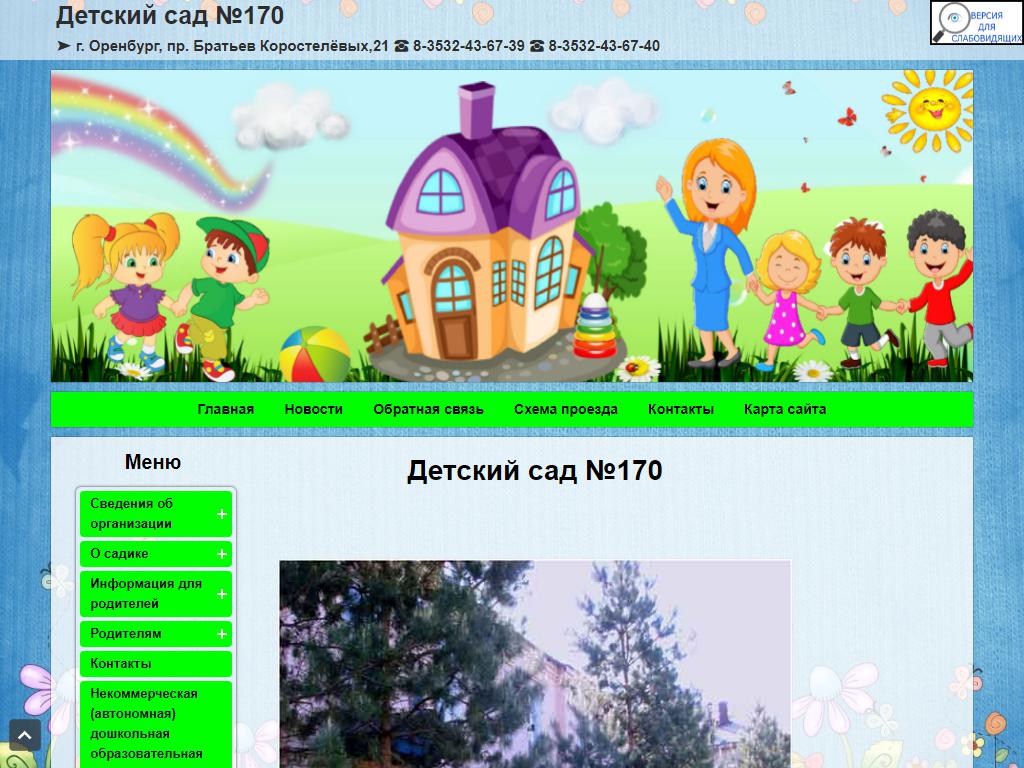 Детский сад №170 по адресу 460009, Оренбургская область, Оренбург, проспект Братьев Коростелёвых, 21 в дальнейшем Организация, размещена в следующих категориях: