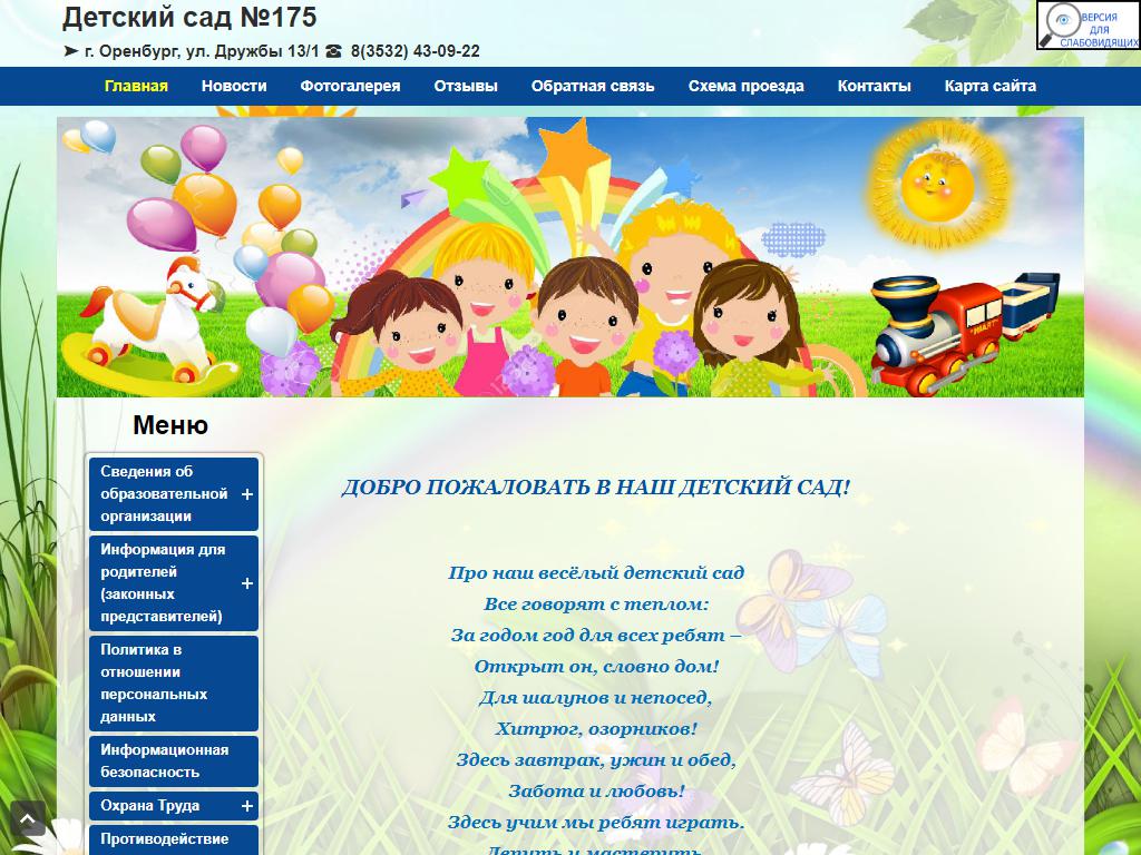 Детский сад №175 по адресу 460052, Оренбургская область, Оренбург, Дружбы, 13/1 в дальнейшем Организация, размещена в следующих категориях: