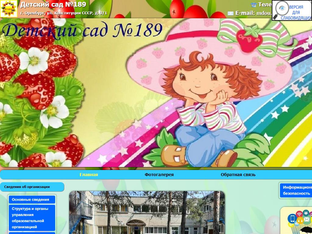 Детский сад №189 комбинированного вида по адресу 460044, Оренбургская область, Оренбург, Конституции СССР, 3/1 в дальнейшем Организация, размещена в следующих категориях: