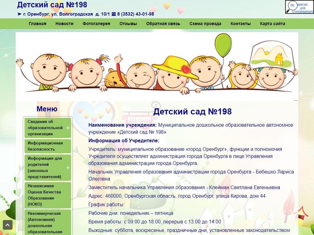 Детский сад №198 по адресу 460038, Оренбургская область, Оренбург, Волгоградская, 10/1 к2 в дальнейшем Организация, размещена в следующих категориях: