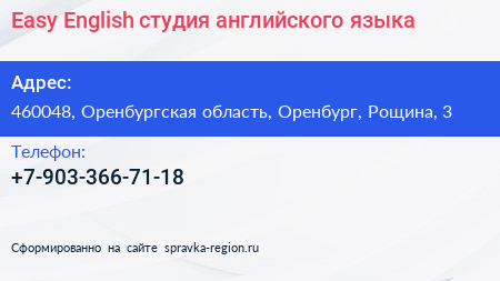 Easy English, студия английского языка по адресу 460048, Оренбургская область, Оренбург, Рощина, 3 в дальнейшем Организация, размещена в следующих категориях: