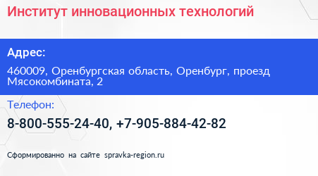 Институт инновационных технологий по адресу 460009, Оренбургская область, Оренбург, проезд Мясокомбината, 2 в дальнейшем Организация, размещена в следующих категориях: