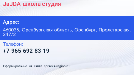 JaJDA, школа-студия по адресу 460035, Оренбургская область, Оренбург, Пролетарская, 247/2 в дальнейшем Организация, размещена в следующих категориях: