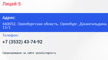 Лицей №5 по адресу 460052, Оренбургская область, Оренбург, Джангильдина, 15/1 в дальнейшем Организация, размещена в следующих категориях: