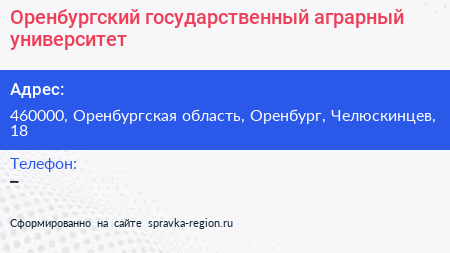 Оренбургский государственный аграрный университет по адресу 460000, Оренбургская область, Оренбург, Челюскинцев, 18 в дальнейшем Организация, размещена в следующих категориях: