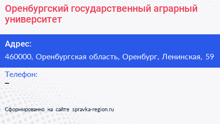 Оренбургский государственный аграрный университет по адресу 460000, Оренбургская область, Оренбург, Ленинская, 59 в дальнейшем Организация, размещена в следующих категориях: