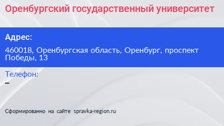 Оренбургский государственный университет по адресу 460018, Оренбургская область, Оренбург, проспект Победы, 13 в дальнейшем Организация, размещена в следующих категориях: